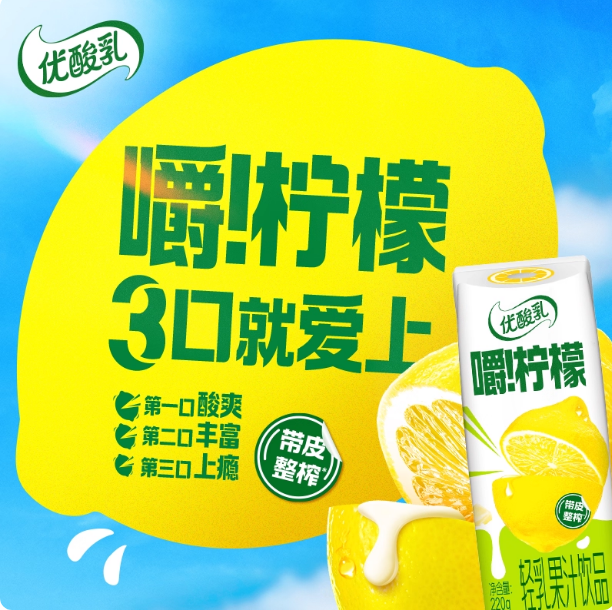 【特价8月产】伊利优酸乳嚼柠檬轻乳果汁饮品 240g* ...