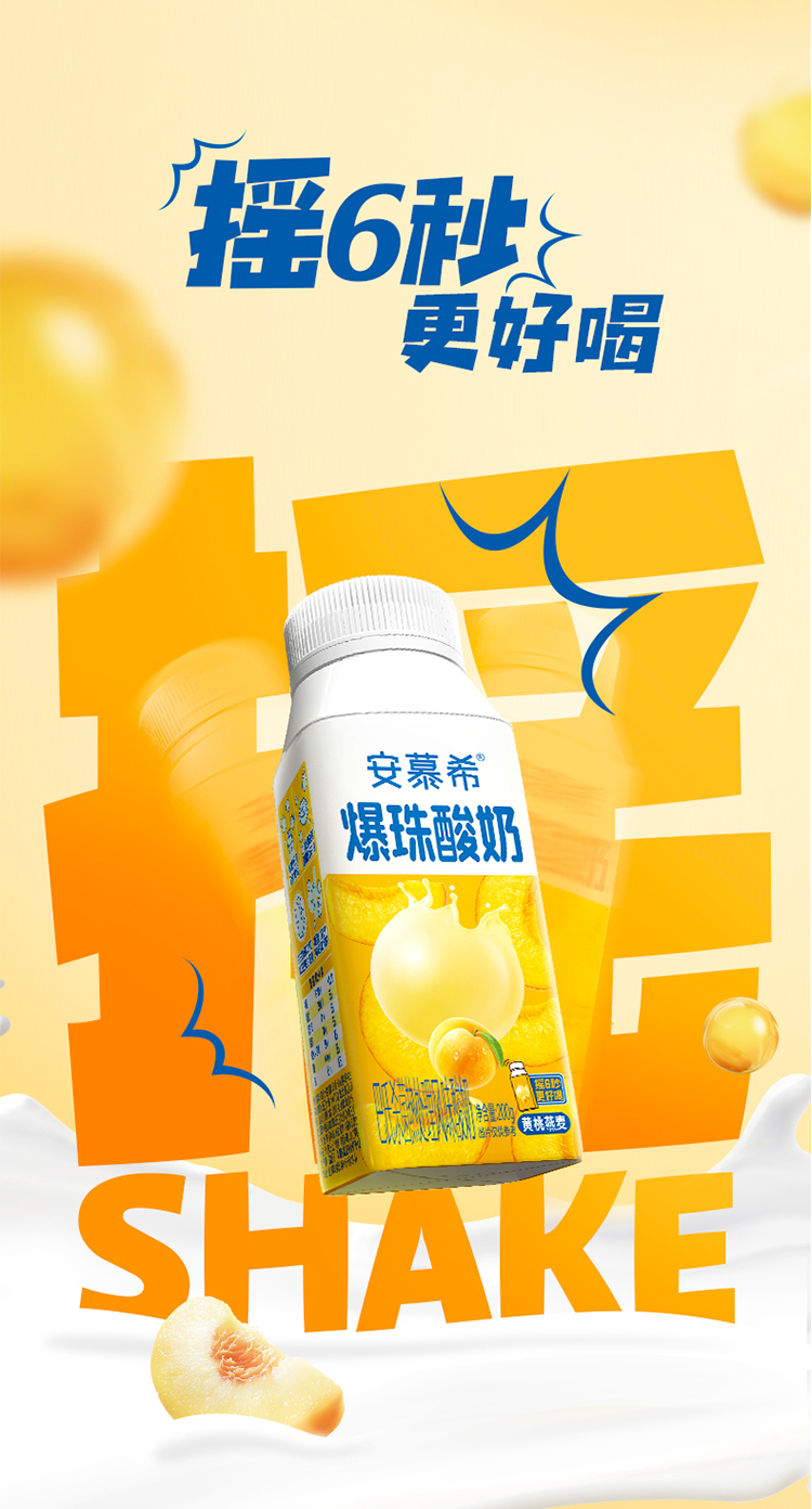 【特价12月产】伊利安慕希黄桃燕麦爆珠酸奶 200g*8盒/箱