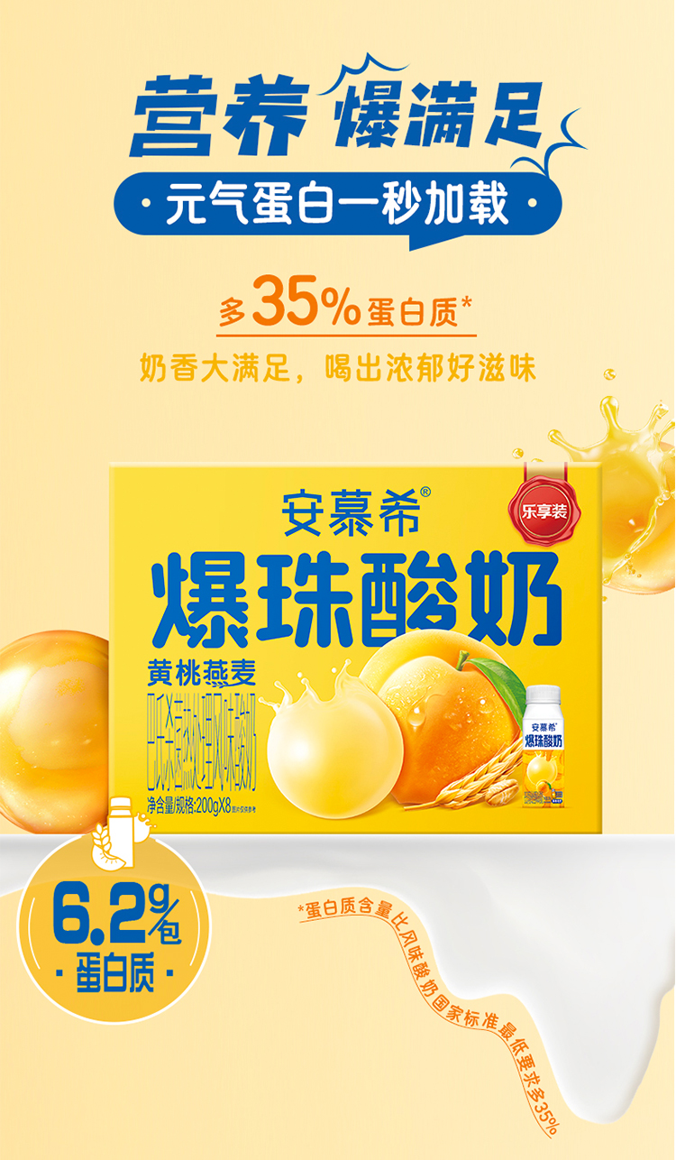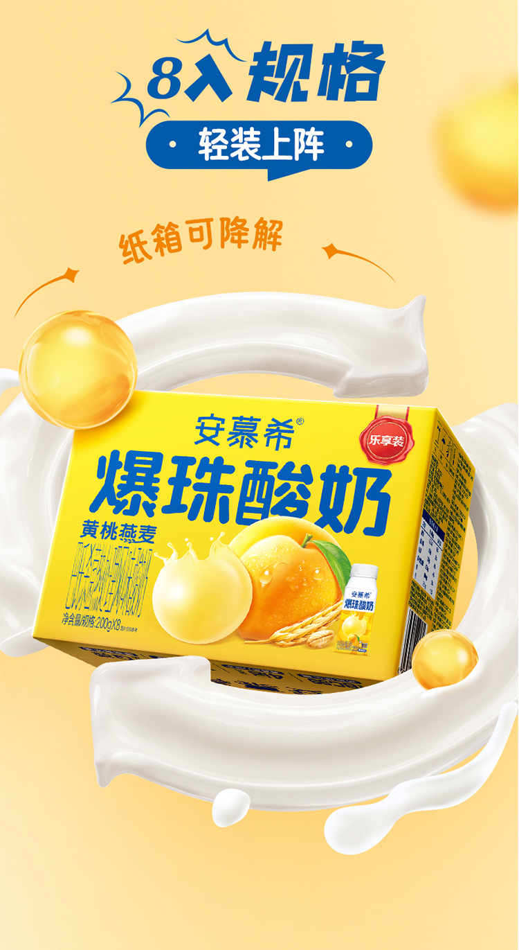 【特价12月产】伊利安慕希黄桃燕麦爆珠酸奶 200g*8 ...