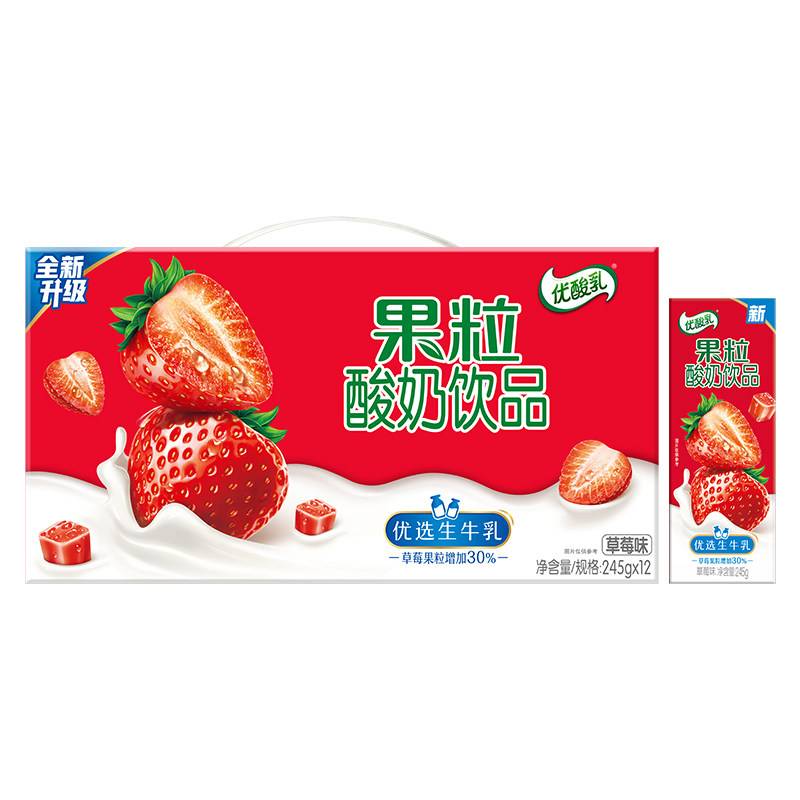 【特价12月产】伊利果粒优酸乳草莓味 245gx12盒整箱